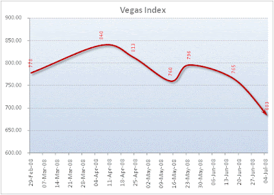 And that's how my 'Vegas Index' was born. See it as a Dow Jones Index for Global Consumerism. Look at it as a barometer for the willingness to spend money. In fact, if I drop my usual modesty for a moment, you could argue that my Vegas Index is a lot more telling about whether or not we're hitting a recession than the Dow Jones index is. Think about it, Vegas is an exaggerated model of our now almost global desire to spend money. The Vegas index covers the hotel industry and from there the gambling industry, retail sales, transportation, production of goods, energy consumption, etcetera.